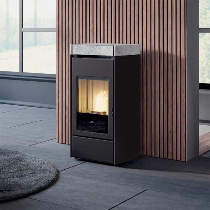 De Edilkamin Lena Plus is een duurzame pelletkachel die een hoog rendement heeft van 88,5%. Deze kachel heeft een vermogen van 9,2 kW en kan daarmee een woonkamer van 240m3 verwarmen. De pellets zijn in te brengen aan de bovenkant van de kachel door middel van een uitschuifbaar bovenblad. En dankzij het pelletreservoir met een capaciteit van 24 kilo en het verbruik van slechts 0;9-2;2 kilo per uur; brandt de kachel op de laagste stand maximaal 27 uur achter elkaar en op de hoogste stand minimaal 11 uur.
