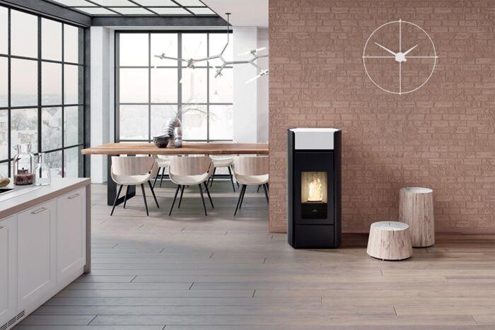 De Edilkamin Vyda is een duurzame pelletkachel die een rendement heeft van maar liefst 90%. Deze kachel heeft een vermogen van 14;3 kW en is daarom geschikt voor woonruimte van 375m3. Dankzij het pelletreservoir met een capaciteit van 30 kilo en het verbruik van slechts 1;0-3;3 kilo per uur; brandt de kachel op de laagste stand maximaal 30 uur achter elkaar en op de hoogste stand minimaal 9 uur.